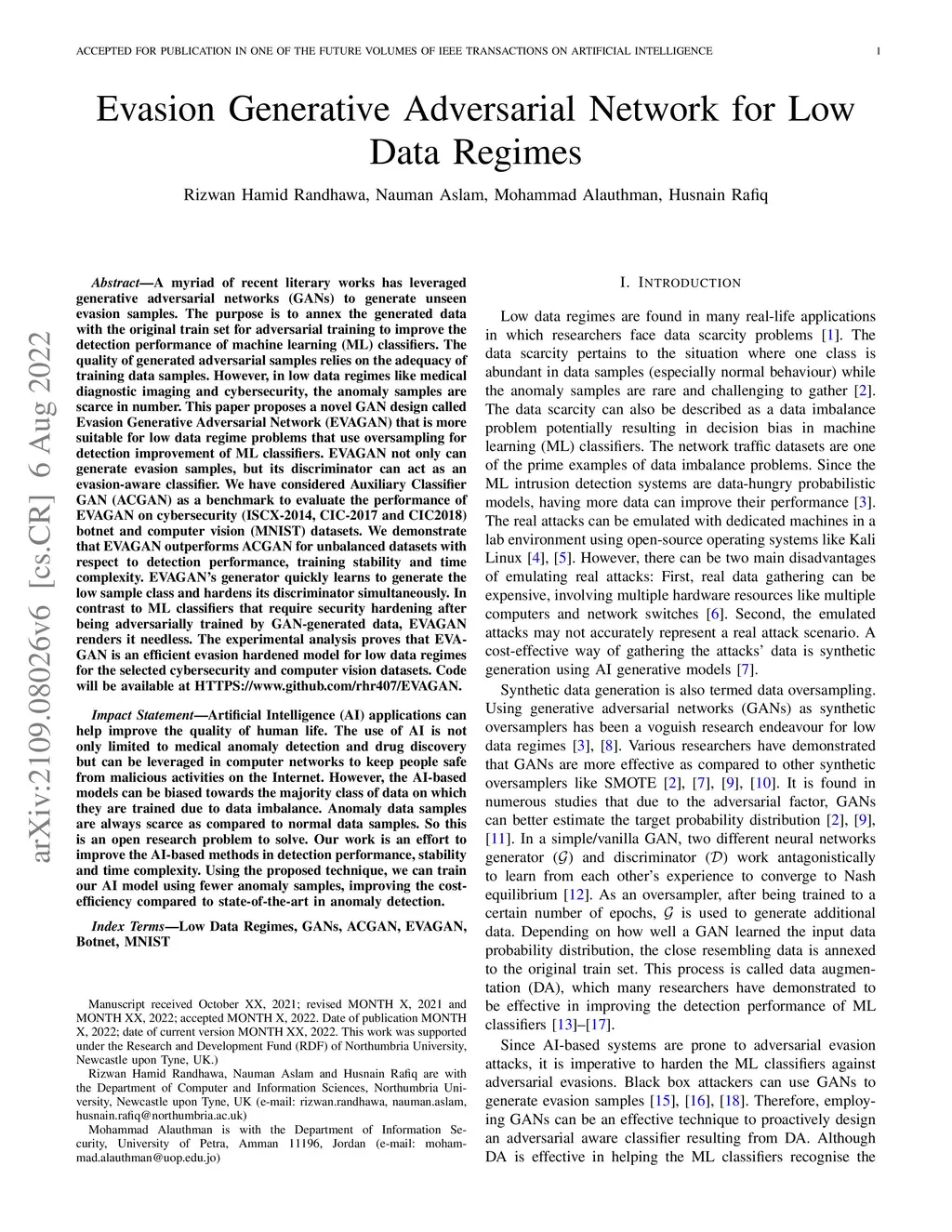 EVAGAN: Evasion Generative Adversarial Network for Low Data Regimes