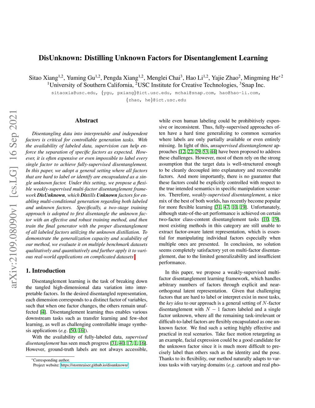 DisUnknown: Distilling Unknown Factors for Disentanglement Learning