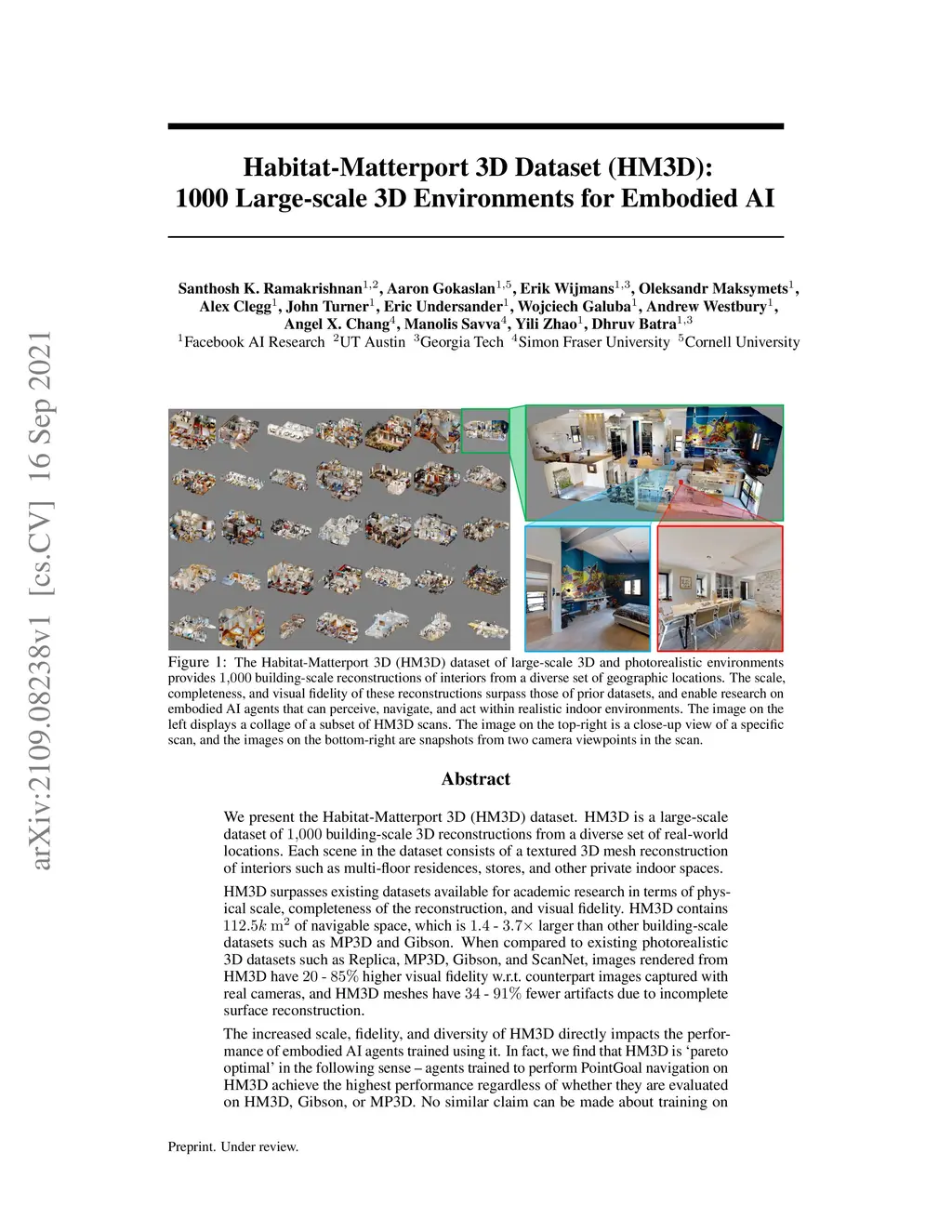 Habitat-Matterport 3D Dataset (HM3D): 1000 Large-scale 3D Environments