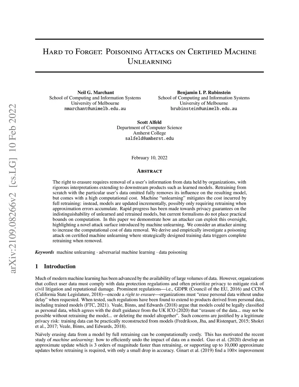 The right to erasure requires removal of a user's information from data held by organizations, with rigorous interpretations extending to downstream products such as learned models. Retraining from scratch with the particular user's data omitted fully removes its influence on the resulting model, but comes with a high computational cost. Machine "unlearning" mitigates the cost incurred by full retraining: instead, models are updated incrementally, possibly only requiring retraining when approximation errors accumulate. Rapid progress has been made towards privacy guarantees on the indistinguishability of unlearned and retrained models, but current formalisms do not place practical bounds on computation. In this paper we demonstrate how an attacker can exploit this oversight, highlighting a novel attack surface introduced by machine unlearning. We consider an attacker aiming to increase the computational cost of data removal. We derive and empirically investigate a poisoning attack on certified machine unlearning where strategically designed training data triggers complete retraining when removed.