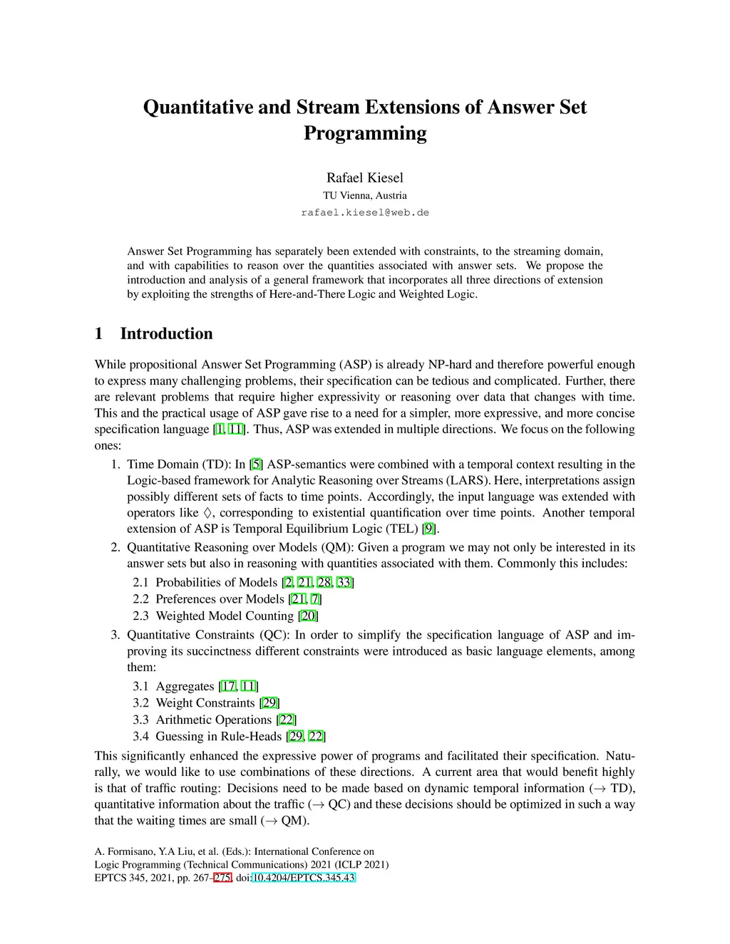 Answer Set Programming has separately been extended with constraints, to the streaming domain, and with capabilities to reason over the quantities associated with answer sets. We propose the introduction and analysis of a general framework that incorporates all three directions of extension by exploiting the strengths of Here-and-There Logic and Weighted Logic.