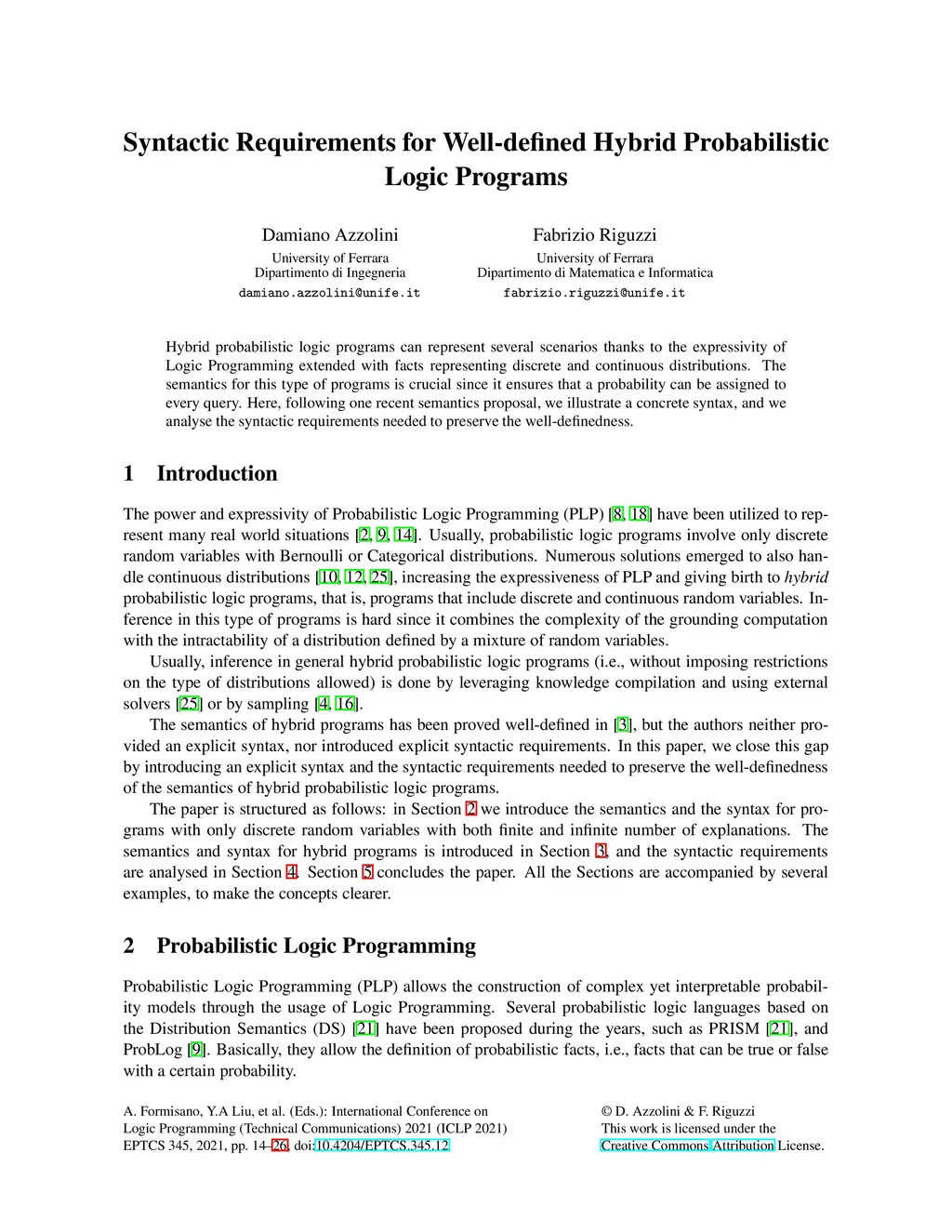 Hybrid probabilistic logic programs can represent several scenarios thanks to the expressivity of Logic Programming extended with facts representing discrete and continuous distributions. The semantics for this type of programs is crucial since it ensures that a probability can be assigned to every query. Here, following one recent semantics proposal, we illustrate a concrete syntax, and we analyse the syntactic requirements needed to preserve the well-definedness.