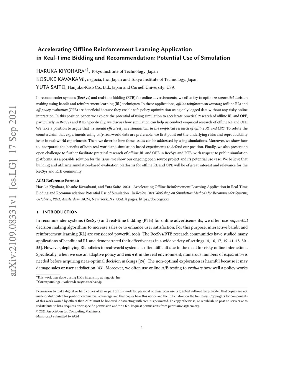 Bidding and Recommendation: Potential Use of Simulation