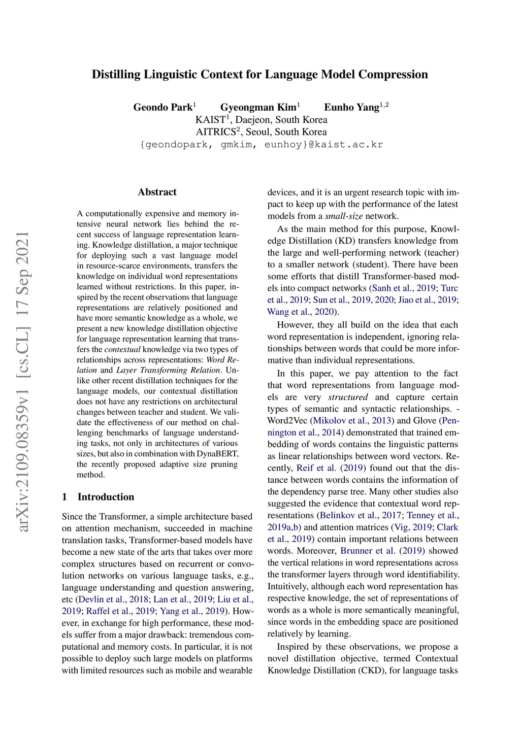Distilling Linguistic Context for Language Model Compression