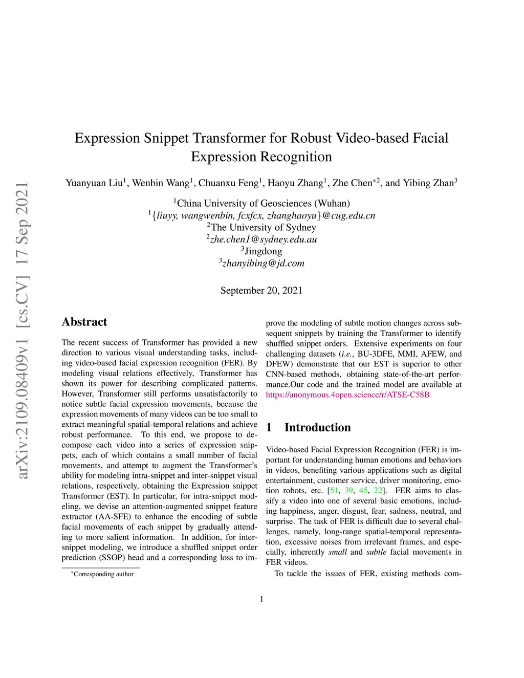 The recent success of Transformer has provided a new direction to various visual understanding tasks, including video-based facial expression recognition (FER). By modeling visual relations effectively, Transformer has shown its power for describing complicated patterns. However, Transformer still performs unsatisfactorily to notice subtle facial expression movements, because the expression movements of many videos can be too small to extract meaningful spatial-temporal relations and achieve robust performance. To this end, we propose to decompose each video into a series of expression snippets, each of which contains a small number of facial movements, and attempt to augment the Transformer's ability for modeling intra-snippet and inter-snippet visual relations, respectively, obtaining the Expression snippet Transformer (EST). In particular, for intra-snippet modeling, we devise an attention-augmented snippet feature extractor (AA-SFE) to enhance the encoding of subtle facial movements of each snippet by gradually attending to more salient information. In addition, for inter-snippet modeling, we introduce a shuffled snippet order prediction (SSOP) head and a corresponding loss to improve the modeling of subtle motion changes across subsequent snippets by training the Transformer to identify shuffled snippet orders. Extensive experiments on four challenging datasets (i.e., BU-3DFE, MMI, AFEW, and DFEW) demonstrate that our EST is superior to other CNN-based methods, obtaining state-of-the-art performance.