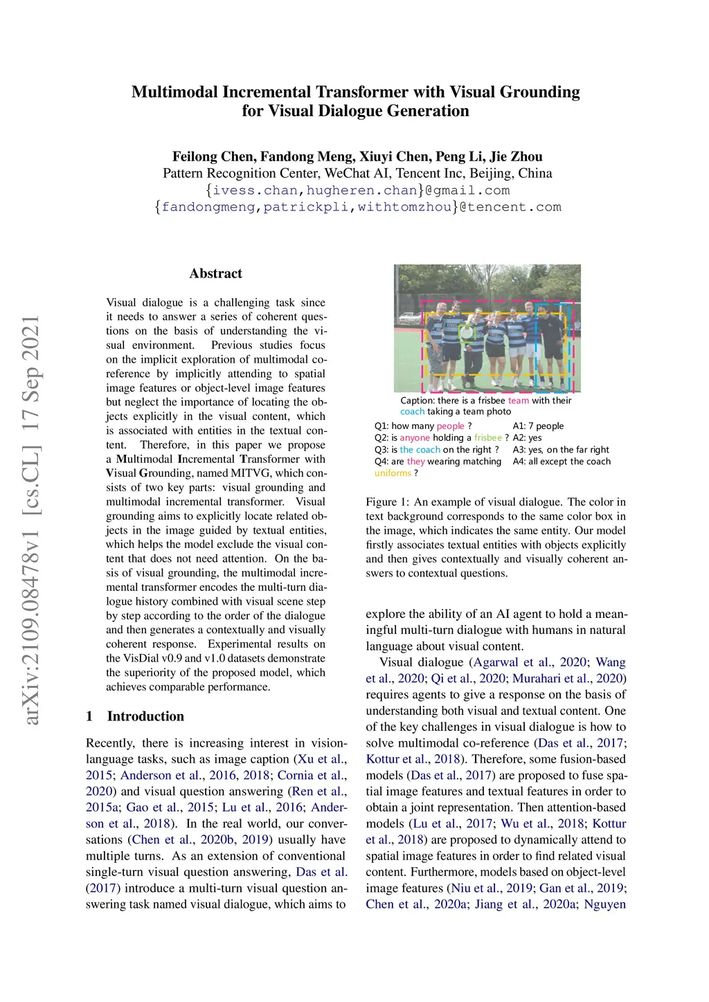 Multimodal Incremental Transformer with Visual Grounding for Visual