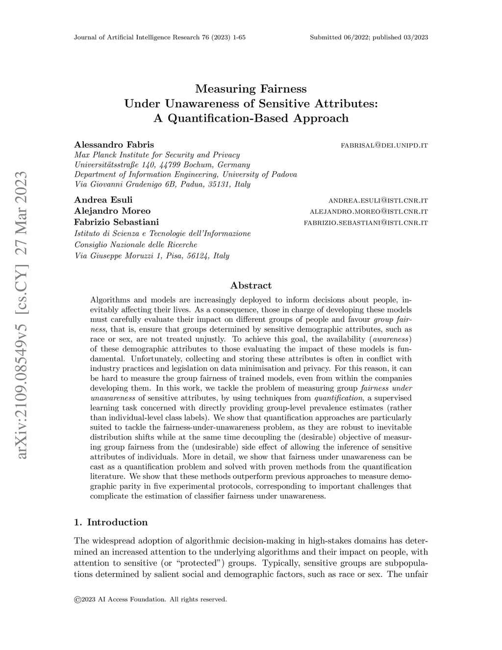 Measuring Fairness Under Unawareness of Sensitive Attributes: A