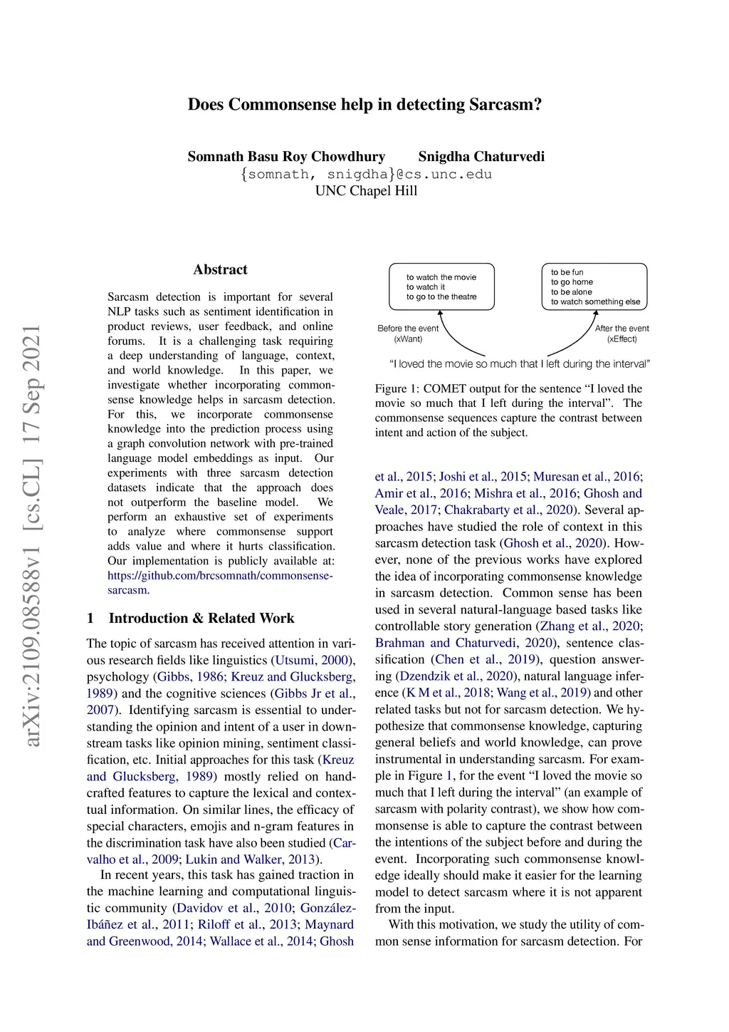 Sarcasm detection is important for several NLP tasks such as sentiment identification in product reviews, user feedback, and online forums. It is a challenging task requiring a deep understanding of language, context, and world knowledge. In this paper, we investigate whether incorporating commonsense knowledge helps in sarcasm detection. For this, we incorporate commonsense knowledge into the prediction process using a graph convolution network with pre-trained language model embeddings as input. Our experiments with three sarcasm detection datasets indicate that the approach does not outperform the baseline model. We perform an exhaustive set of experiments to analyze where commonsense support adds value and where it hurts classification. Our implementation is publicly available at: https://github.com/brcsomnath/commonsense-sarcasm.