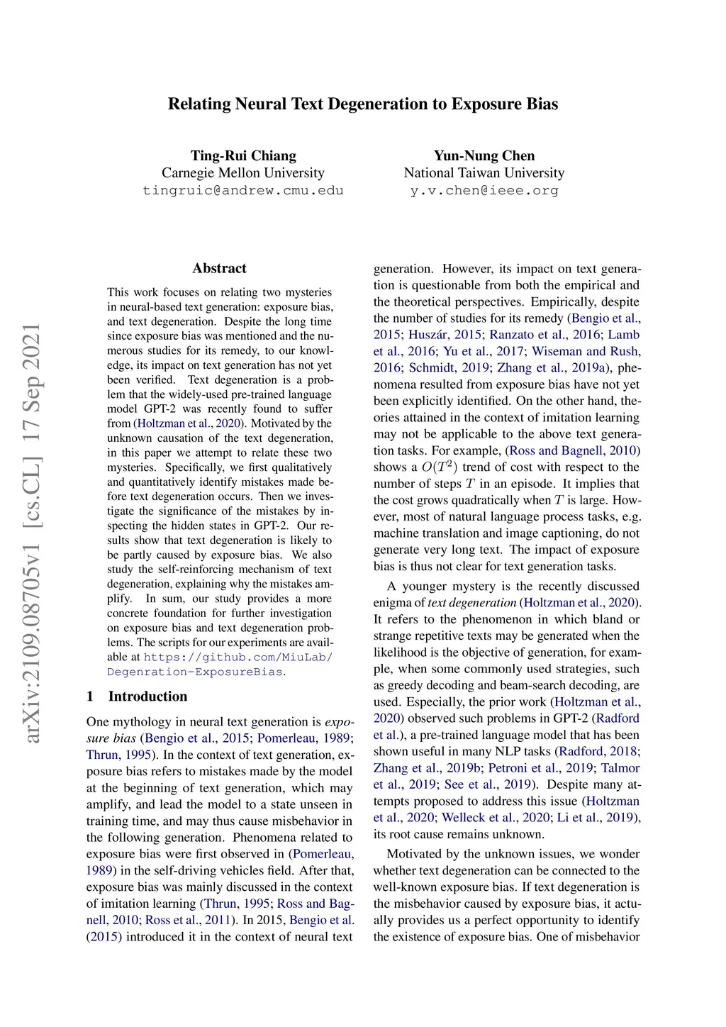Relating Neural Text Degeneration to Exposure Bias