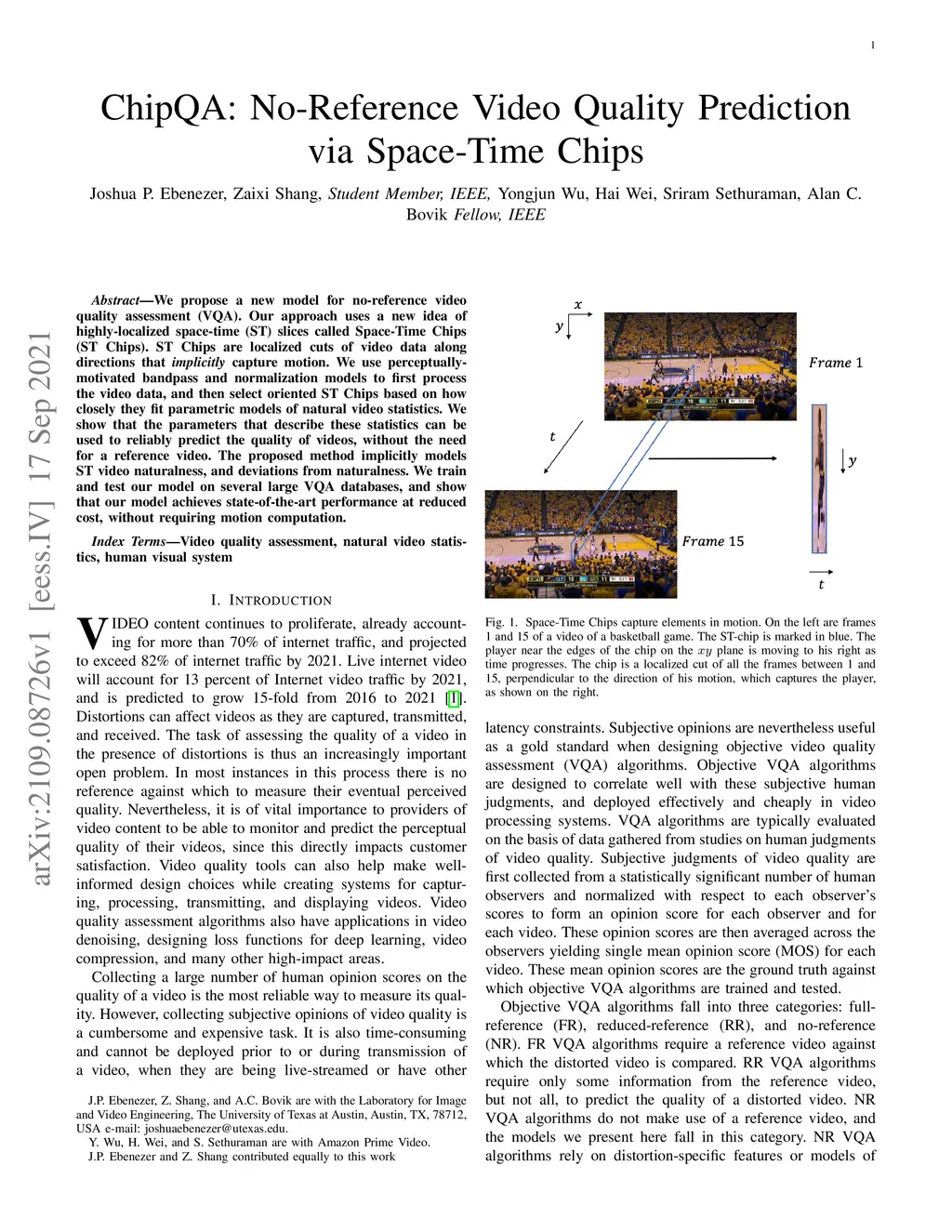 ChipQA: No-Reference Video Quality Prediction via Space-Time Chips