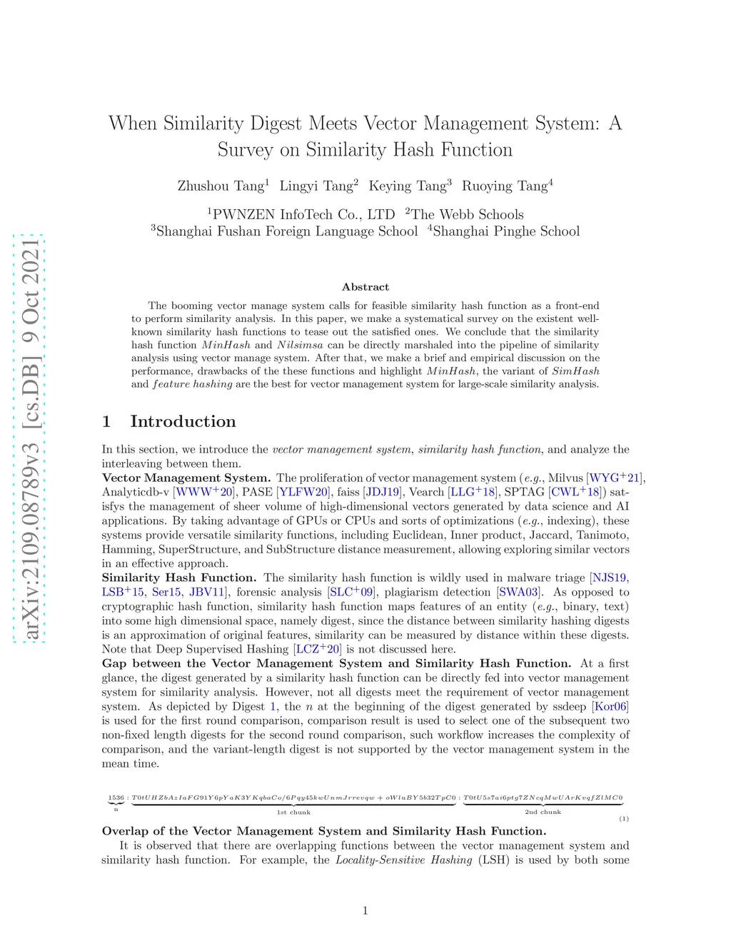 When Similarity Digest Meets Vector Management System: A Survey on
