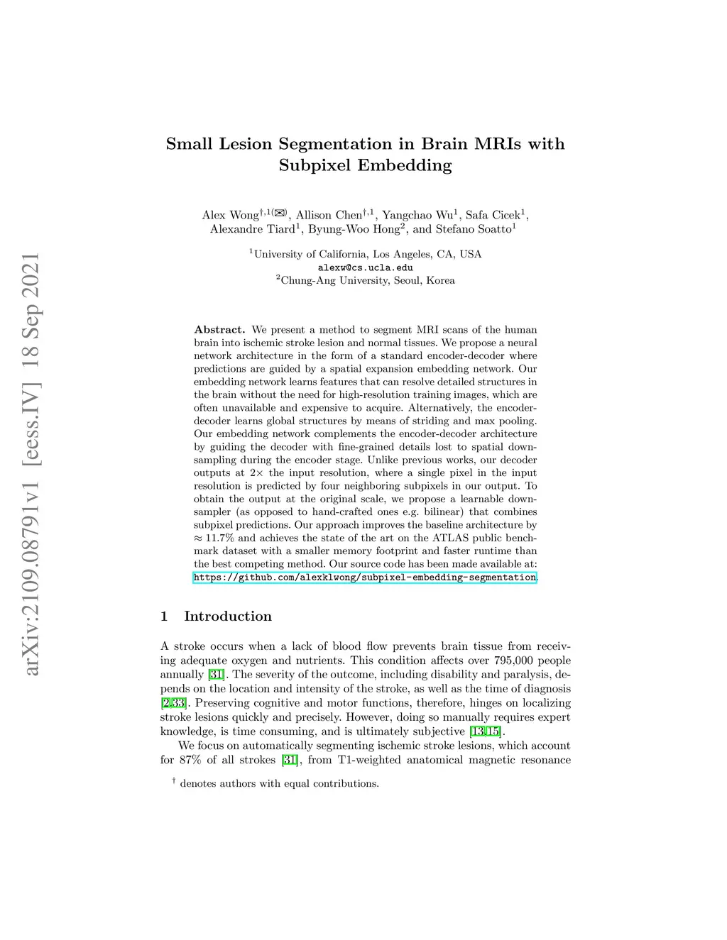 Small Lesion Segmentation in Brain MRIs with Subpixel Embedding
