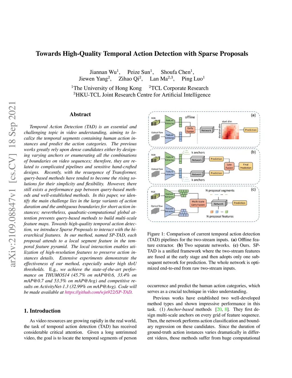 Towards High-Quality Temporal Action Detection with Sparse Proposals