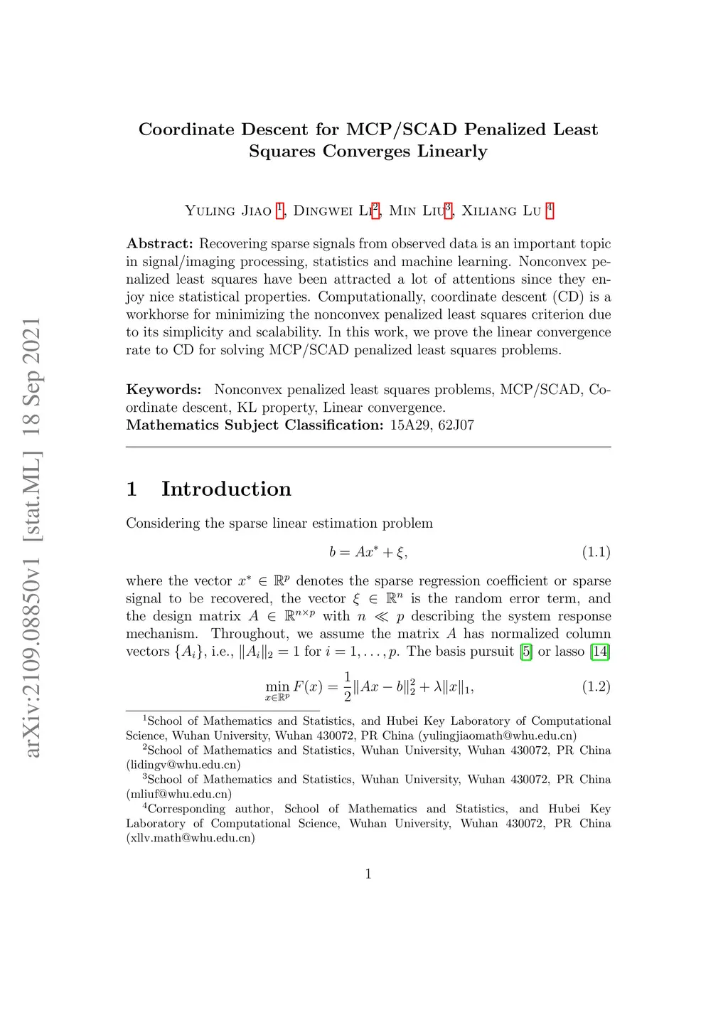 Recovering sparse signals from observed data is an important topic in signal/imaging processing, statistics and machine learning. Nonconvex penalized least squares have been attracted a lot of attentions since they enjoy nice statistical properties. Computationally, coordinate descent (CD) is a workhorse for minimizing the nonconvex penalized least squares criterion due to its simplicity and scalability. In this work, we prove the linear convergence rate to CD for solving MCP/SCAD penalized least squares problems.