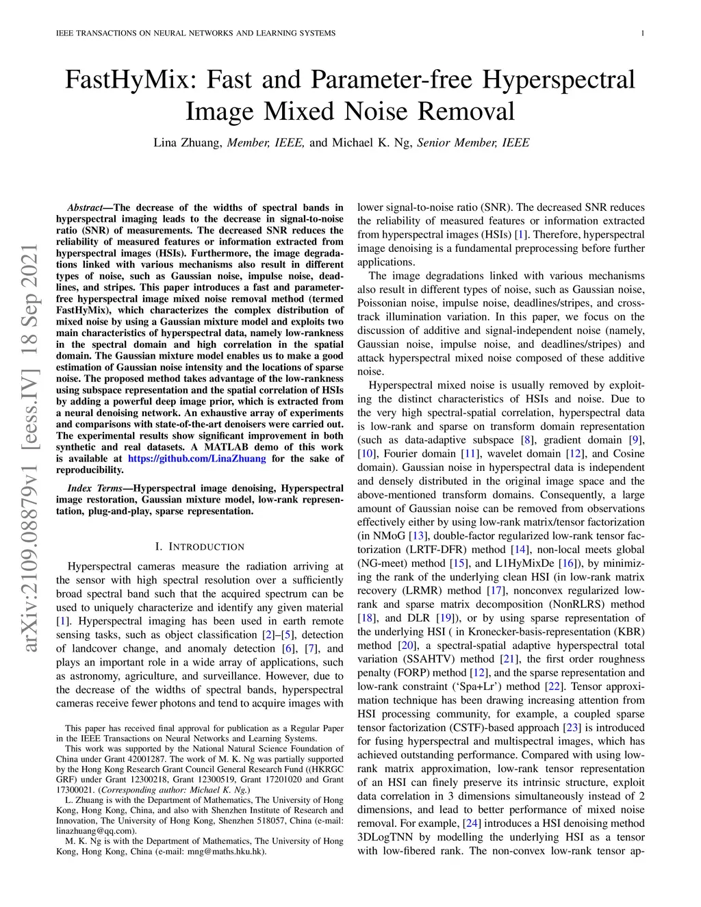 FastHyMix: Fast and Parameter-free Hyperspectral Image Mixed Noise
