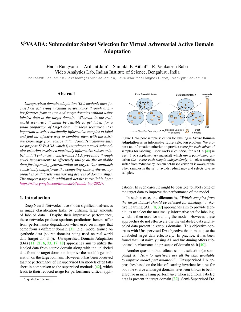 Unsupervised domain adaptation (DA) methods have focused on achieving maximal performance through aligning features from source and target domains without using labeled data in the target domain. Whereas, in the real-world scenario's it might be feasible to get labels for a small proportion of target data. In these scenarios, it is important to select maximally-informative samples to label and find an effective way to combine them with the existing knowledge from source data. Towards achieving this, we propose SVAADA which i) introduces a novel submodular criterion to select a maximally informative subset to label and ii) enhances a cluster-based DA procedure through novel improvements to effectively utilize all the available data for improving generalization on target. Our approach consistently outperforms the competing state-of-the-art approaches on datasets with varying degrees of domain shifts.