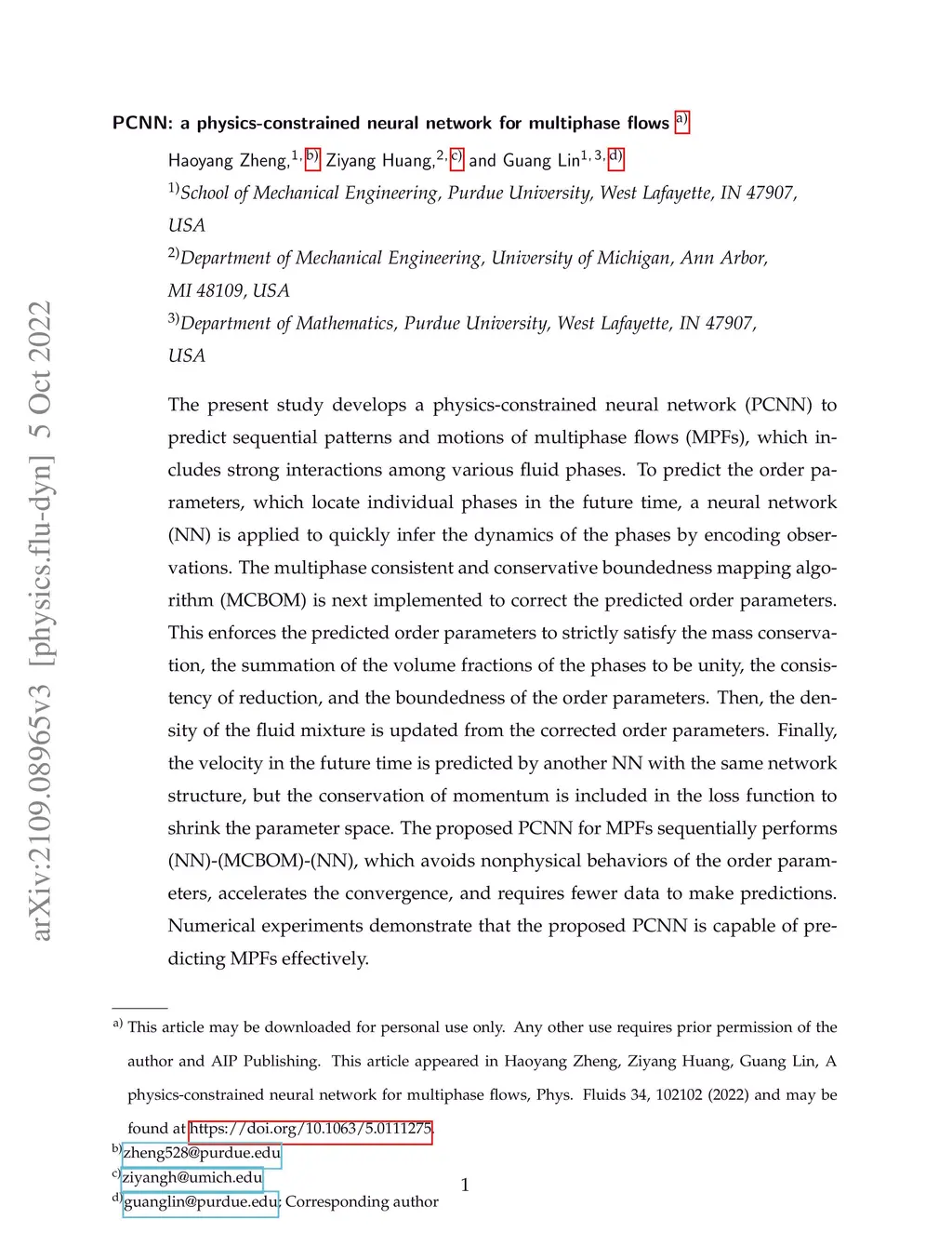 The present study develops a physics-constrained neural network (PCNN) to predict sequential patterns and motions of multiphase flows (MPFs), which includes strong interactions among various fluid phases. To predict the order parameters, which locate individual phases in the future time, a neural network (NN) is applied to quickly infer the dynamics of the phases by encoding observations. The multiphase consistent and conservative boundedness mapping algorithm (MCBOM) is next implemented to correct the predicted order parameters. This enforces the predicted order parameters to strictly satisfy the mass conservation, the summation of the volume fractions of the phases to be unity, the consistency of reduction, and the boundedness of the order parameters. Then, the density of the fluid mixture is updated from the corrected order parameters. Finally, the velocity in the future time is predicted by another NN with the same network structure, but the conservation of momentum is included in the loss function to shrink the parameter space. The proposed PCNN for MPFs sequentially performs (NN)-(MCBOM)-(NN), which avoids nonphysical behaviors of the order parameters, accelerates the convergence, and requires fewer data to make predictions. Numerical experiments demonstrate that the proposed PCNN is capable of predicting MPFs effectively.