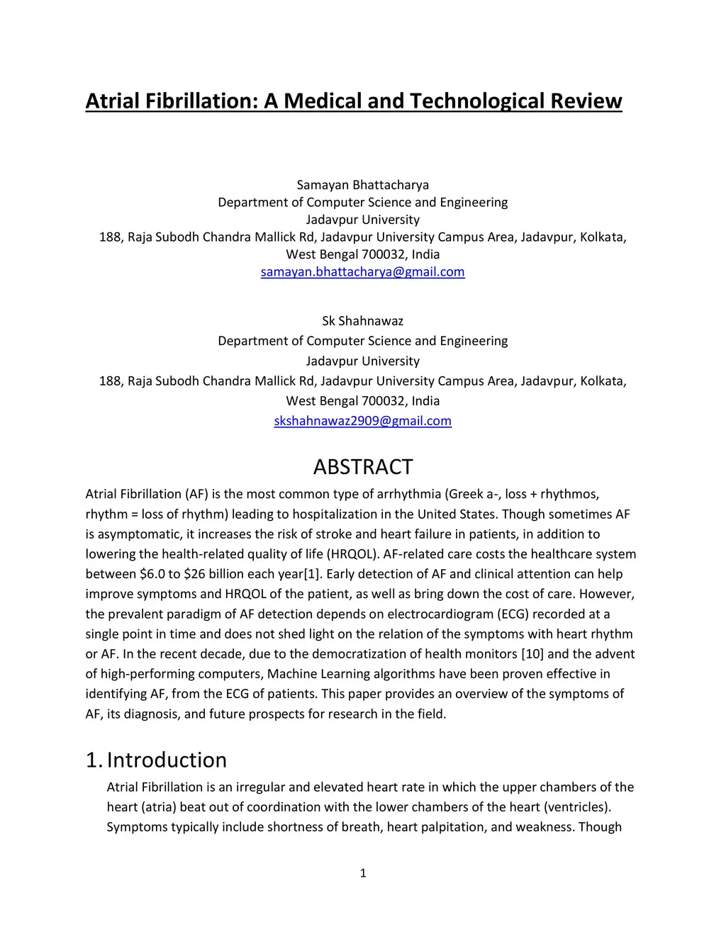 Atrial Fibrillation: A Medical and Technological Review