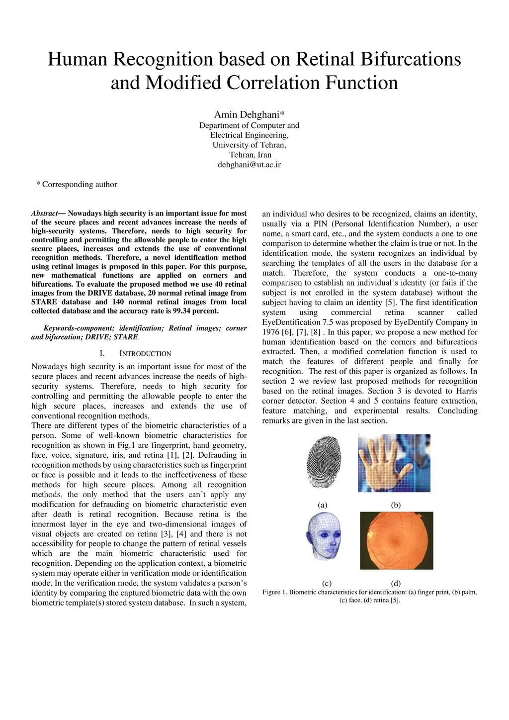 Human Recognition based on Retinal Bifurcations and Modified Correlation