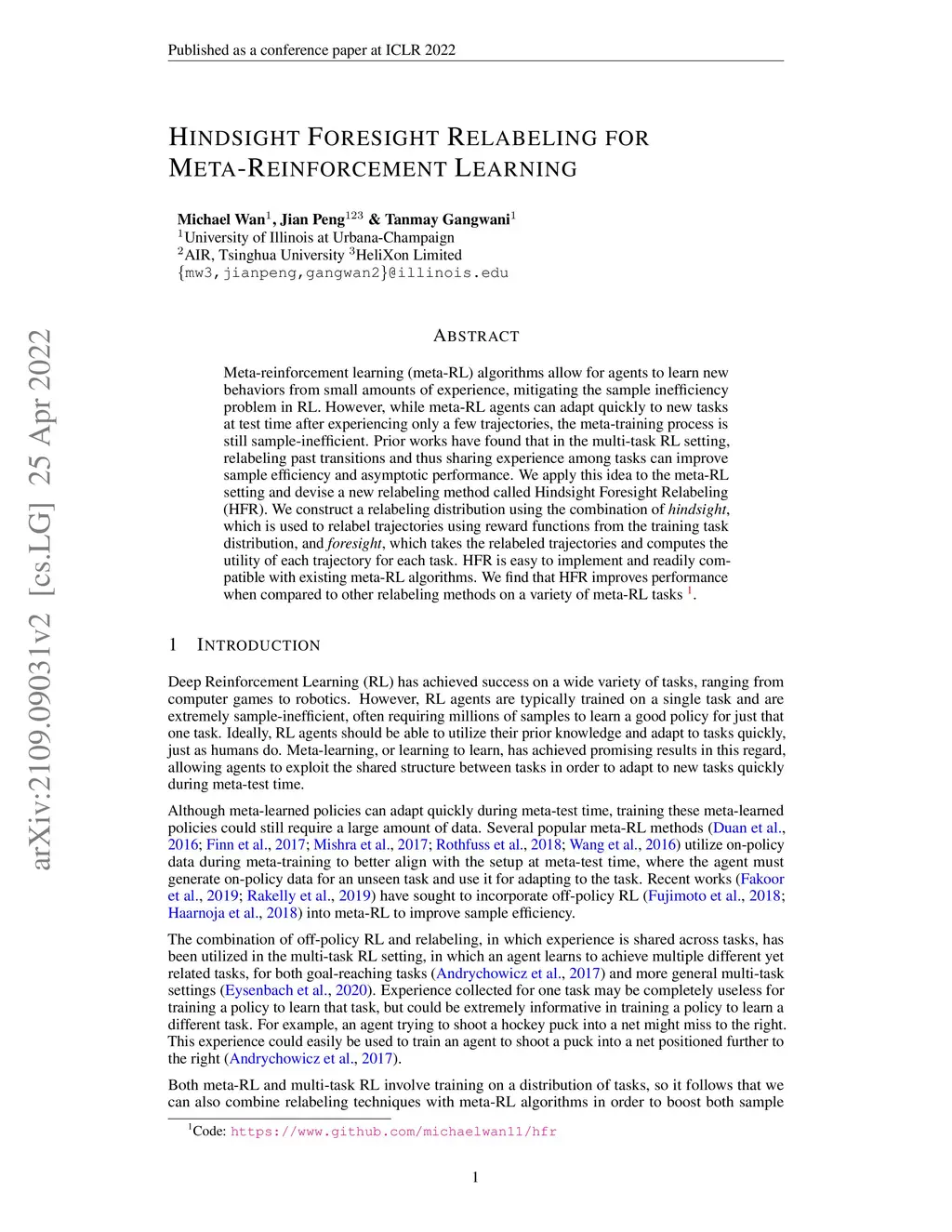 Hindsight Foresight Relabeling for Meta-Reinforcement Learning