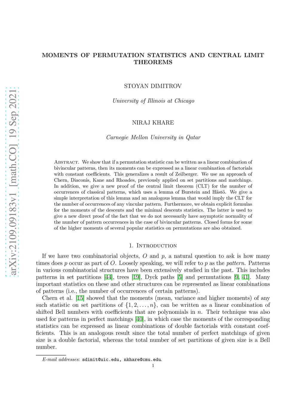 We show that if a permutation statistic can be written as a linear combination of bivincular patterns, then its moments can be expressed as a linear combination of factorials with constant coefficients. This generalizes a result of Zeilberger. We use an approach of Chern, Diaconis, Kane and Rhoades, previously applied on set partitions and matchings. In addition, we give a new proof of the central limit theorem (CLT) for the number of occurrences of classical patterns, which uses a lemma of Burstein and Hasto. We give a simple interpretation of this lemma and an analogous lemma that would imply the CLT for the number of occurrences of any vincular pattern. Furthermore, we obtain explicit formulas for the moments of the descents and the minimal descents statistics. The latter is used to give a new direct proof of the fact that we do not necessarily have asymptotic normality of the number of pattern occurrences in the case of bivincular patterns. Closed forms for some of the higher moments of several popular statistics on permutations are also obtained.