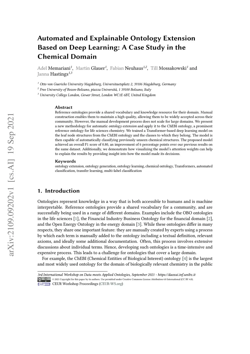 Automated and Explainable Ontology Extension Based on Deep Learning: A