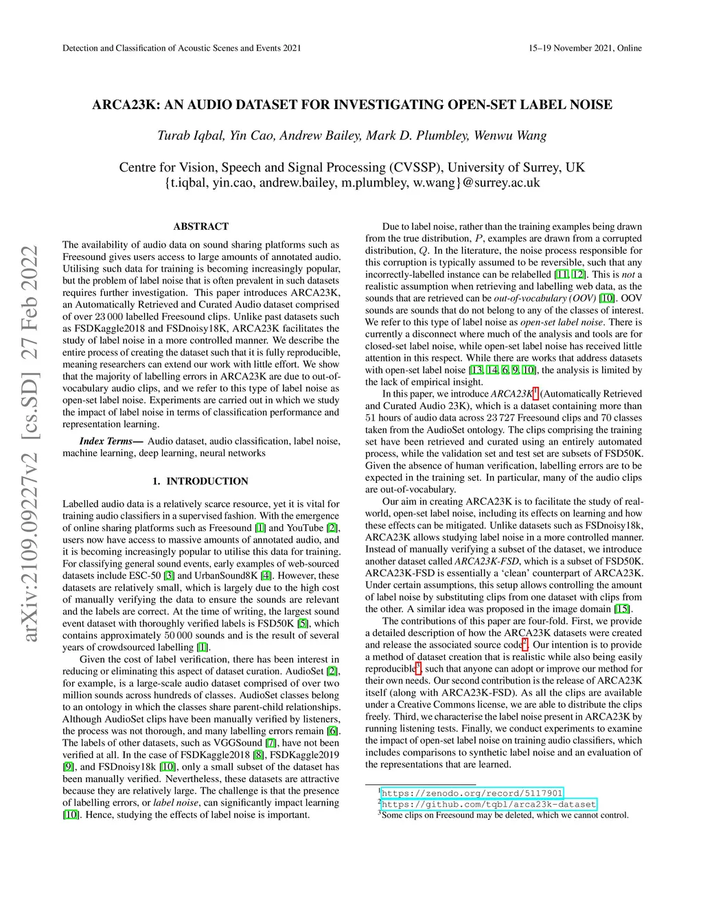 The availability of audio data on sound sharing platforms such as Freesound gives users access to large amounts of annotated audio. Utilising such data for training is becoming increasingly popular, but the problem of label noise that is often prevalent in such datasets requires further investigation. This paper introduces ARCA23K, an Automatically Retrieved and Curated Audio dataset comprised of over 23000 labelled Freesound clips. Unlike past datasets such as FSDKaggle2018 and FSDnoisy18K, ARCA23K facilitates the study of label noise in a more controlled manner. We describe the entire process of creating the dataset such that it is fully reproducible, meaning researchers can extend our work with little effort. We show that the majority of labelling errors in ARCA23K are due to out-of-vocabulary audio clips, and we refer to this type of label noise as open-set label noise. Experiments are carried out in which we study the impact of label noise in terms of classification performance and representation learning.