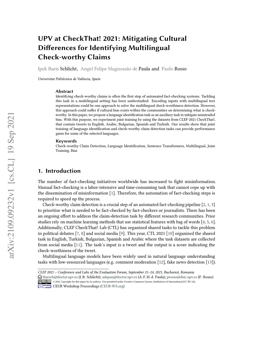 UPV at CheckThat! 2021: Mitigating Cultural Differences for Identifying