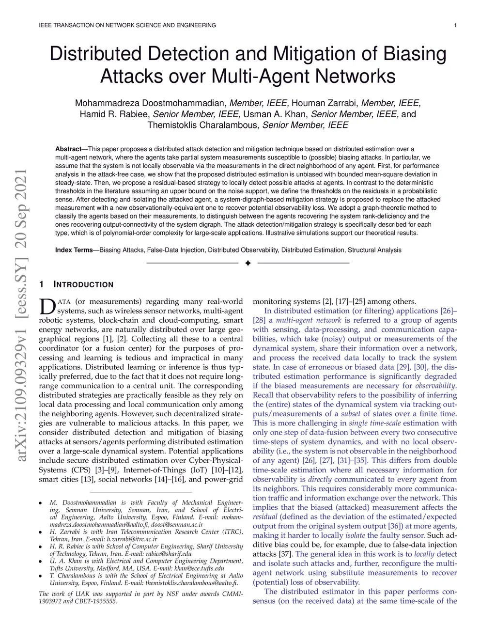 Distributed Detection and Mitigation of Biasing Attacks over Multi-Agent