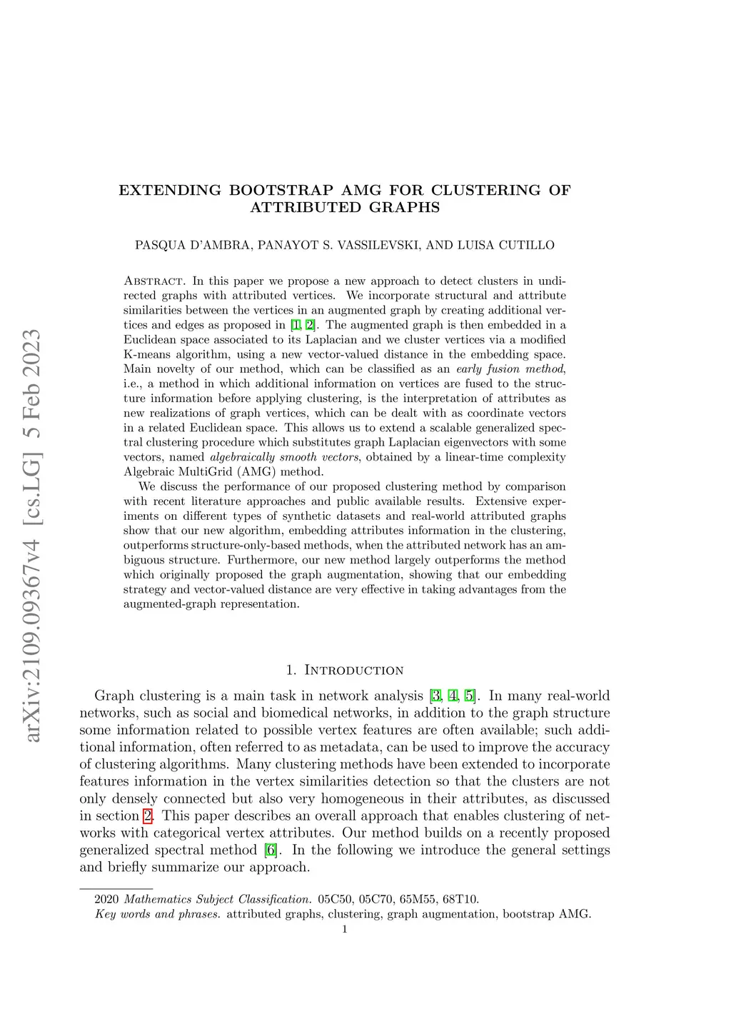 Extending Bootstrap AMG for Clustering of Attributed Graphs