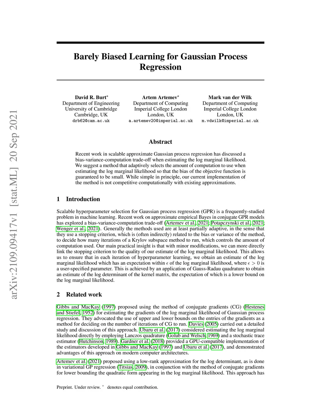 Barely Biased Learning for Gaussian Process Regression