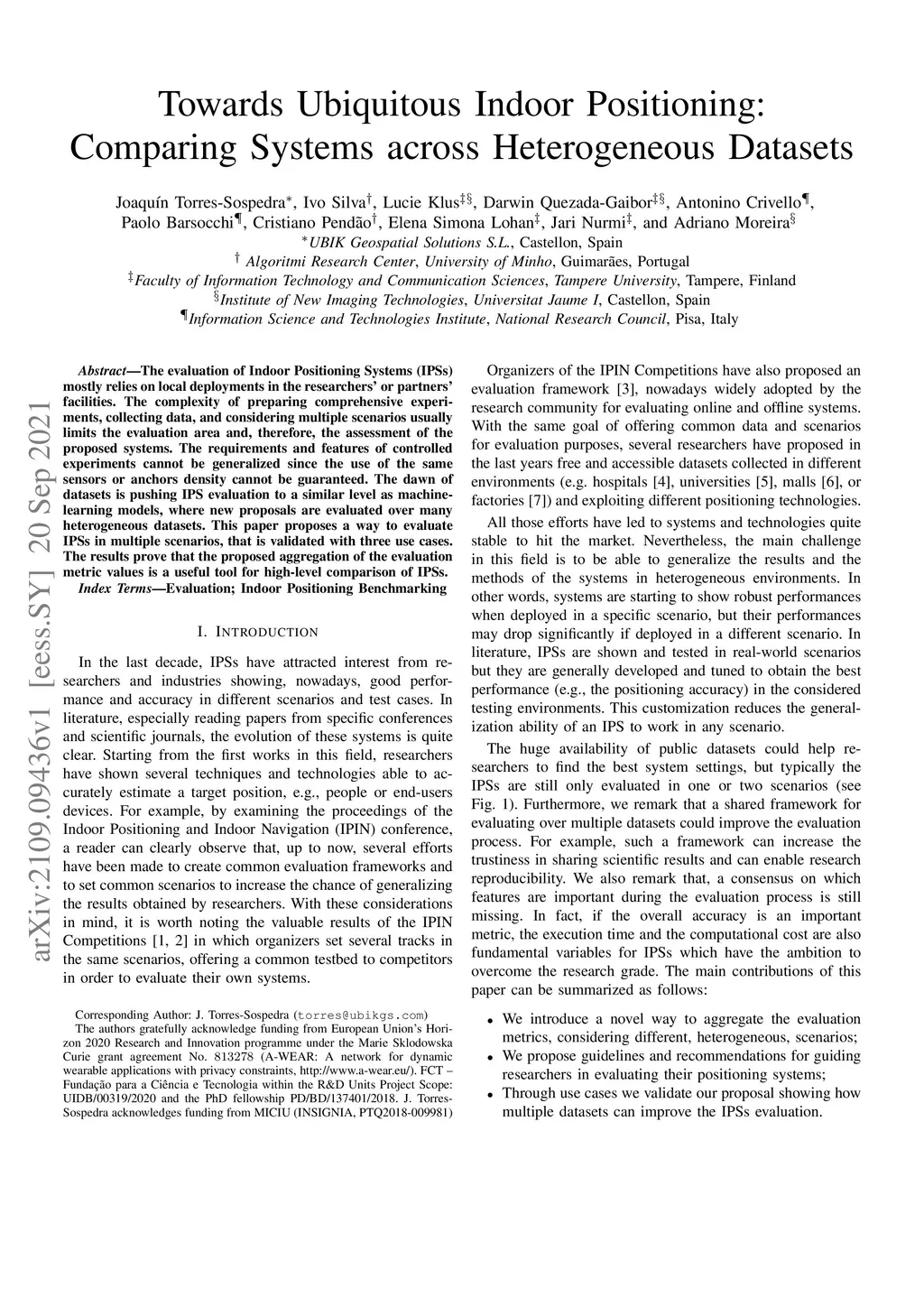 The evaluation of Indoor Positioning Systems (IPS) mostly relies on local deployments in the researchers' or partners' facilities. The complexity of preparing comprehensive experiments, collecting data, and considering multiple scenarios usually limits the evaluation area and, therefore, the assessment of the proposed systems. The requirements and features of controlled experiments cannot be generalized since the use of the same sensors or anchors density cannot be guaranteed. The dawn of datasets is pushing IPS evaluation to a similar level as machine-learning models, where new proposals are evaluated over many heterogeneous datasets. This paper proposes a way to evaluate IPSs in multiple scenarios, that is validated with three use cases. The results prove that the proposed aggregation of the evaluation metric values is a useful tool for high-level comparison of IPSs.