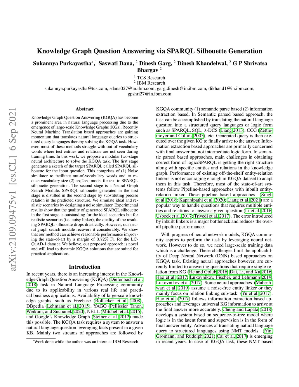 Knowledge Graph Question Answering (KGQA) has become a prominent area in natural language processing due to the emergence of large-scale Knowledge Graphs (KGs). Recently Neural Machine Translation based approaches are gaining momentum that translates natural language queries to structured query languages thereby solving the KGQA task. However, most of these methods struggle with out-of-vocabulary words where test entities and relations are not seen during training time. In this work, we propose a modular two-stage neural architecture to solve the KGQA task. The first stage generates a sketch of the target SPARQL called SPARQL silhouette for the input question. This comprises of (1) Noise simulator to facilitate out-of-vocabulary words and to reduce vocabulary size (2) seq2seq model for text to SPARQL silhouette generation. The second stage is a Neural Graph Search Module. SPARQL silhouette generated in the first stage is distilled in the second stage by substituting precise relation in the predicted structure. We simulate ideal and realistic scenarios by designing a noise simulator. Experimental results show that the quality of generated SPARQL silhouette in the first stage is outstanding for the ideal scenarios but for realistic scenarios (i.e. noisy linker), the quality of the resulting SPARQL silhouette drops drastically. However, our neural graph search module recovers it considerably. We show that our method can achieve reasonable performance improving the state-of-art by a margin of 3.72% F1 for the LC-QuAD-1 dataset. We believe, our proposed approach is novel and will lead to dynamic KGQA solutions that are suited for practical applications.