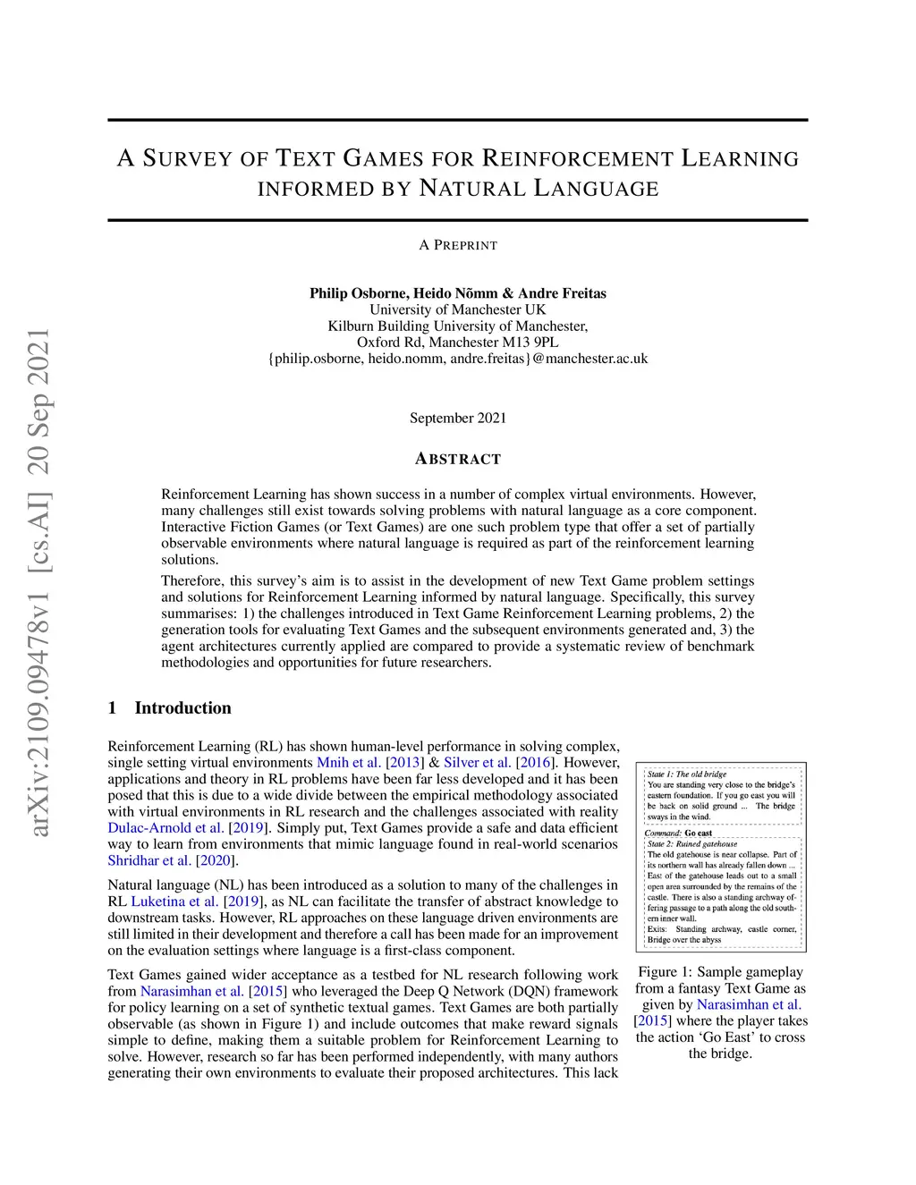 A Survey of Text Games for Reinforcement Learning informed by Natural