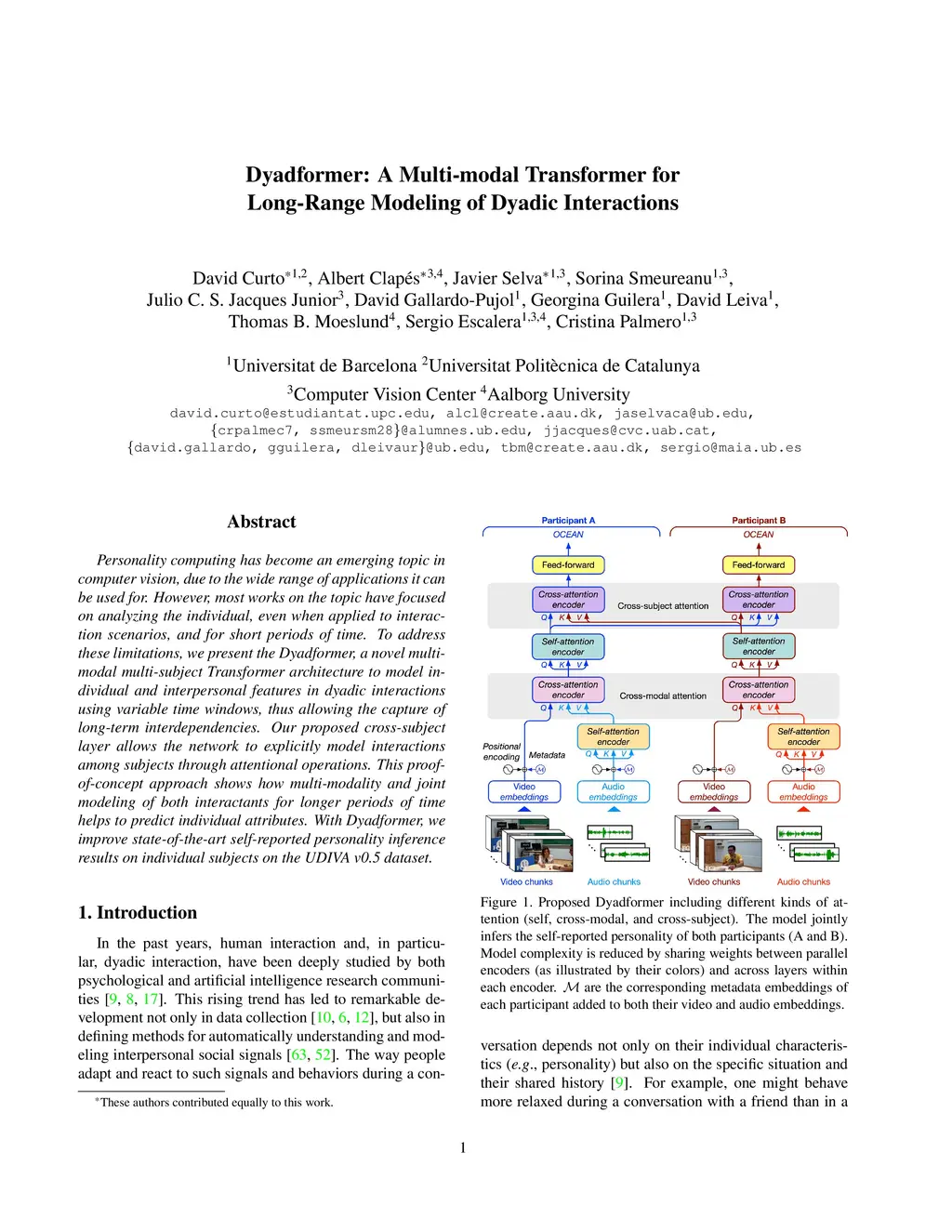 Dyadformer: A Multi-modal Transformer for Long-Range Modeling of Dyadic