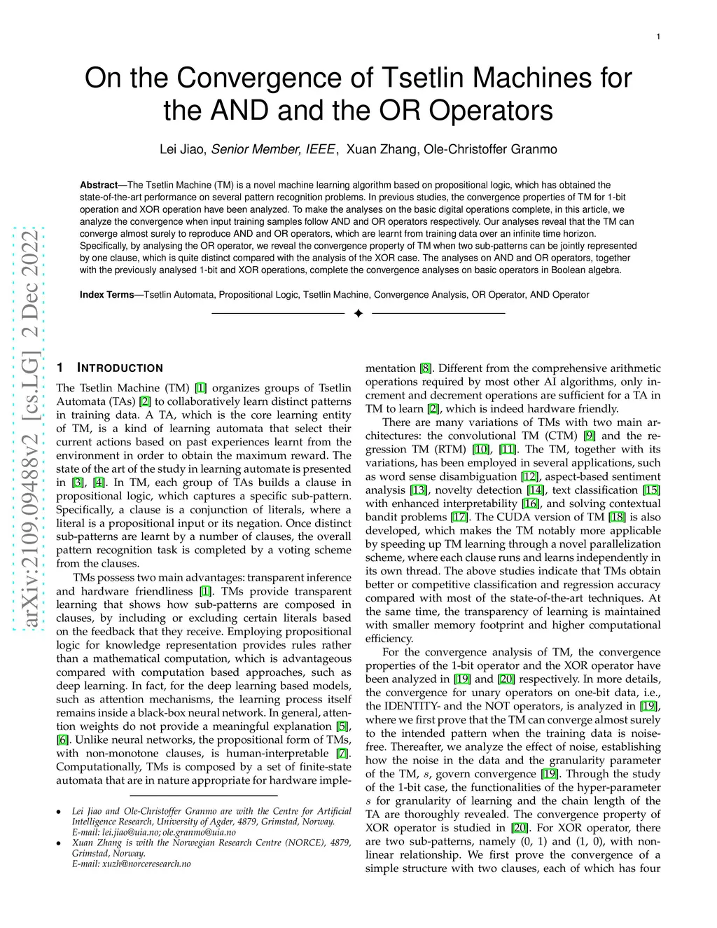 The Tsetlin Machine (TM) is a novel machine-learning algorithm based on propositional logic, which has obtained state-of-the-art performance on several pattern recognition problems. In previous studies, the convergence properties of TM for 1-bit operation and XOR operation have been analyzed. To make the analyses for the basic digital operations complete, in this article, we analyze the convergence when input training samples follow AND and OR operators respectively. Our analyses reveal that the TM can converge almost surely to reproduce AND and OR operators, which are learnt from training data over an infinite time horizon. The analyses on AND and OR operators, together with the previously analysed 1-bit and XOR operations, complete the convergence analyses on basic operators in Boolean algebra.