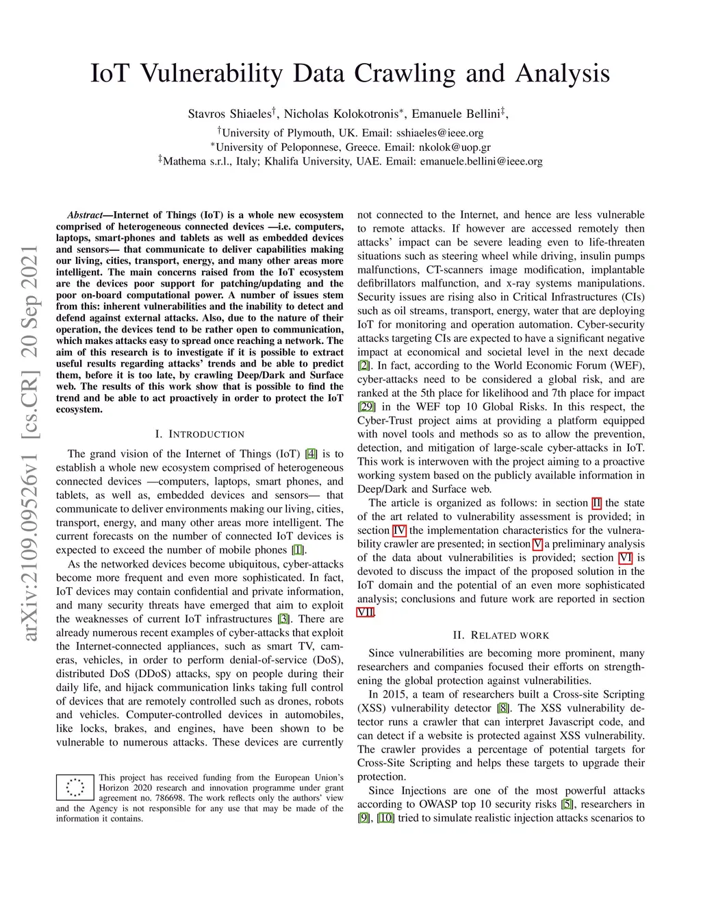 Internet of Things (IoT) is a whole new ecosystem comprised of heterogeneous connected devices -i.e. computers, laptops, smart-phones and tablets as well as embedded devices and sensors-that communicate to deliver capabilities making our living, cities, transport, energy, and many other areas more intelligent. The main concerns raised from the IoT ecosystem are the devices poor support for patching/updating and the poor on-board computational power. A number of issues stem from this: inherent vulnerabilities and the inability to detect and defend against external attacks. Also, due to the nature of their operation, the devices tend to be rather open to communication, which makes attacks easy to spread once reaching a network. The aim of this research is to investigate if it is possible to extract useful results regarding attacks' trends and be able to predict them, before it is too late, by crawling Deep/Dark and Surface web. The results of this work show that is possible to find the trend and be able to act proactively in order to protect the IoT ecosystem.