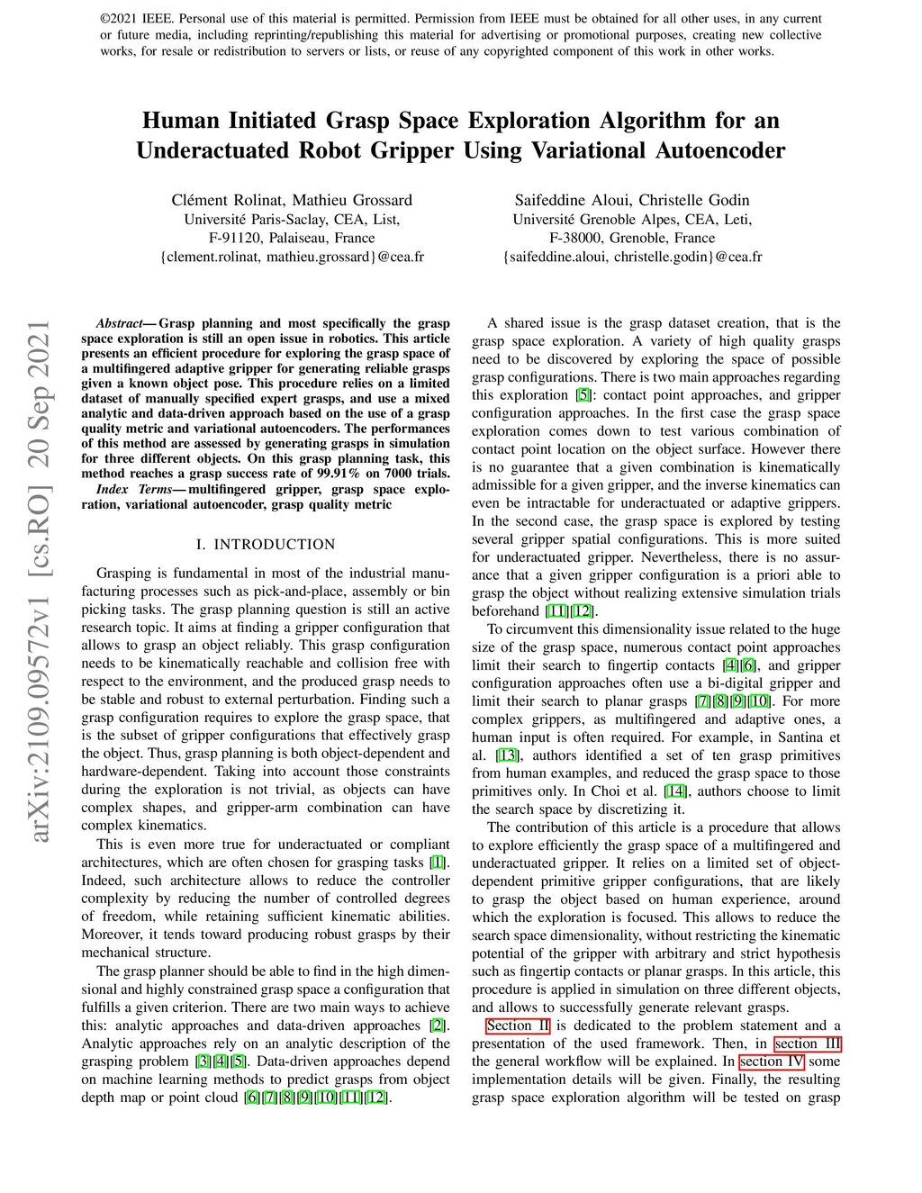 Grasp planning and most specifically the grasp space exploration is still an open issue in robotics. This article presents an efficient procedure for exploring the grasp space of a multifingered adaptive gripper for generating reliable grasps given a known object pose. This procedure relies on a limited dataset of manually specified expert grasps, and use a mixed analytic and data-driven approach based on the use of a grasp quality metric and variational autoencoders. The performances of this method are assessed by generating grasps in simulation for three different objects. On this grasp planning task, this method reaches a grasp success rate of 99.91% on 7000 trials.