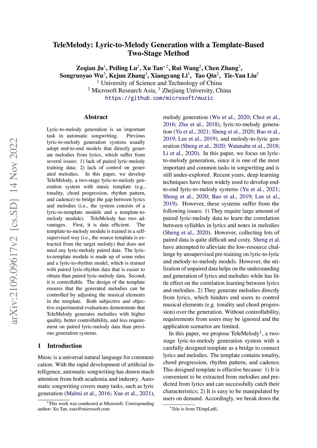 TeleMelody: Lyric-to-Melody Generation with a Template-Based Two-Stage