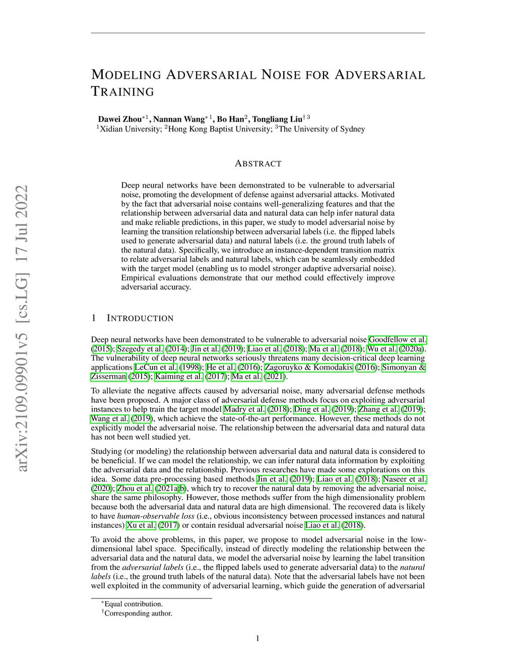 Modeling Adversarial Noise for Adversarial Training