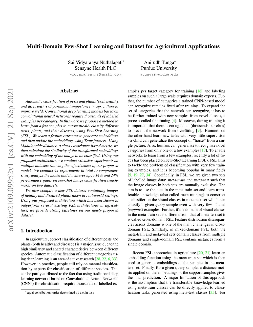 Multi-Domain Few-Shot Learning and Dataset for Agricultural Applications