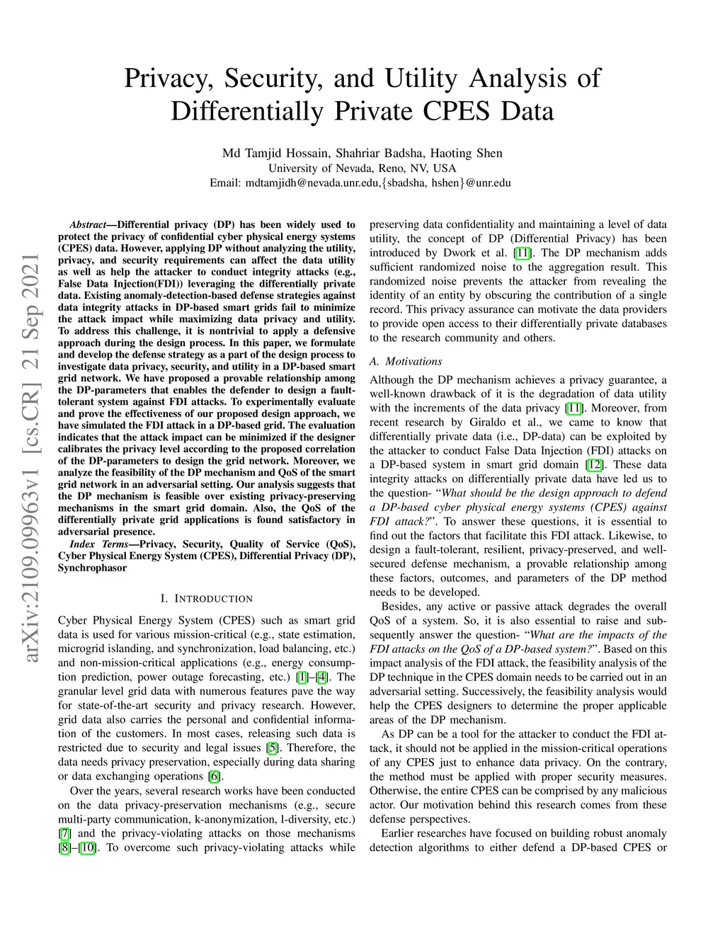 Privacy, Security, and Utility Analysis of Differentially Private CPES