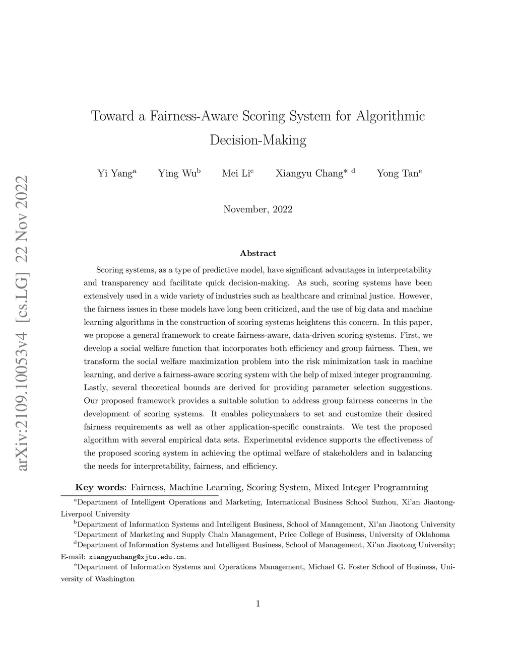 Toward a Fairness-Aware Scoring System for Algorithmic Decision-Making