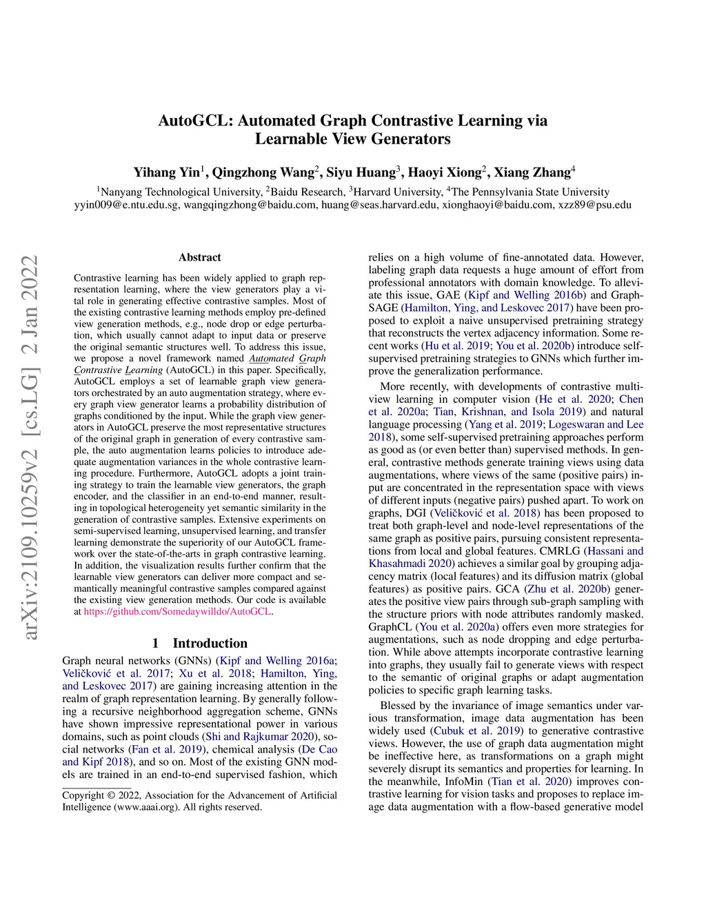 AutoGCL: Automated Graph Contrastive Learning via Learnable View