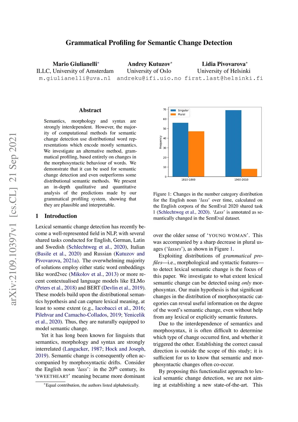 Semantics, morphology and syntax are strongly interdependent. However, the majority of computational methods for semantic change detection use distributional word representations which encode mostly semantics. We investigate an alternative method, grammatical profiling, based entirely on changes in the morphosyntactic behaviour of words. We demonstrate that it can be used for semantic change detection and even outperforms some distributional semantic methods. We present an in-depth qualitative and quantitative analysis of the predictions made by our grammatical profiling system, showing that they are plausible and interpretable.