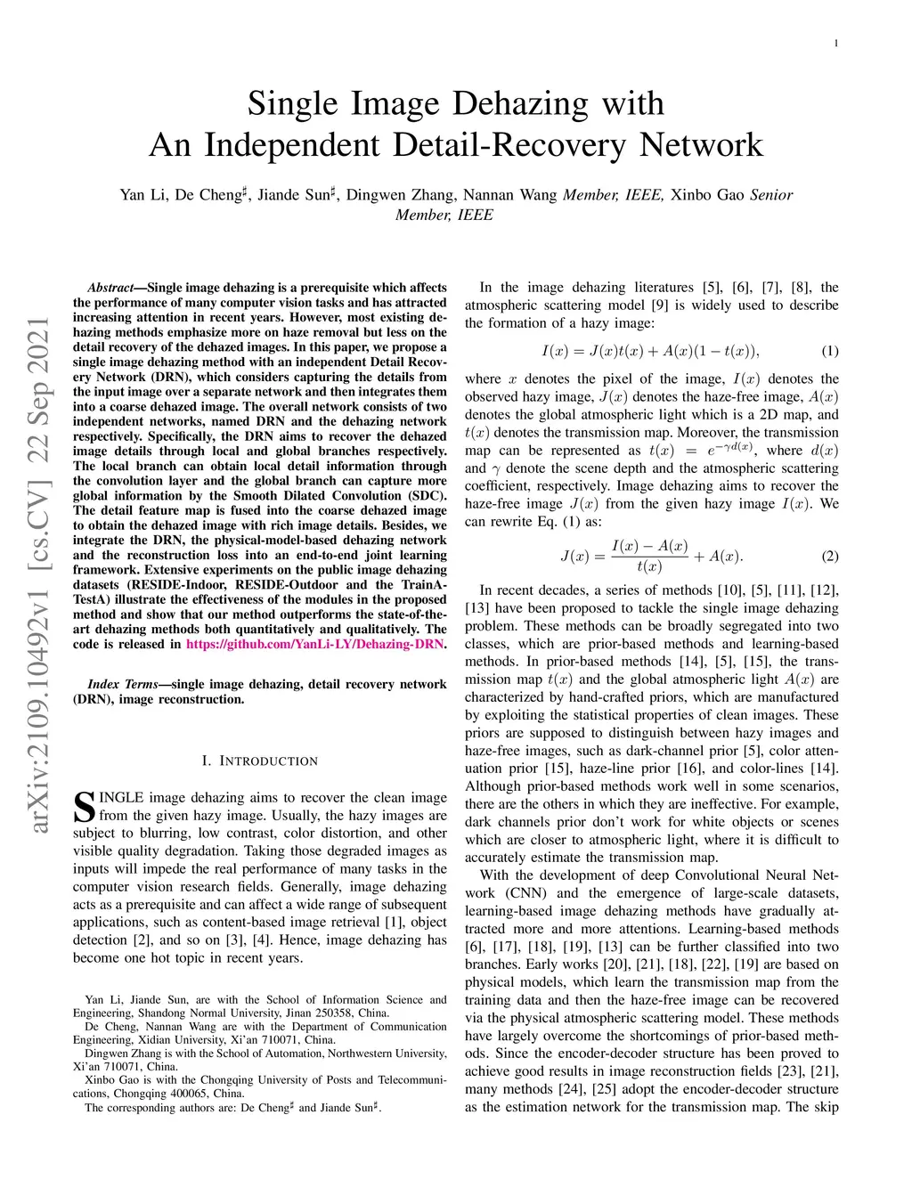 Single Image Dehazing with An Independent Detail-Recovery Network