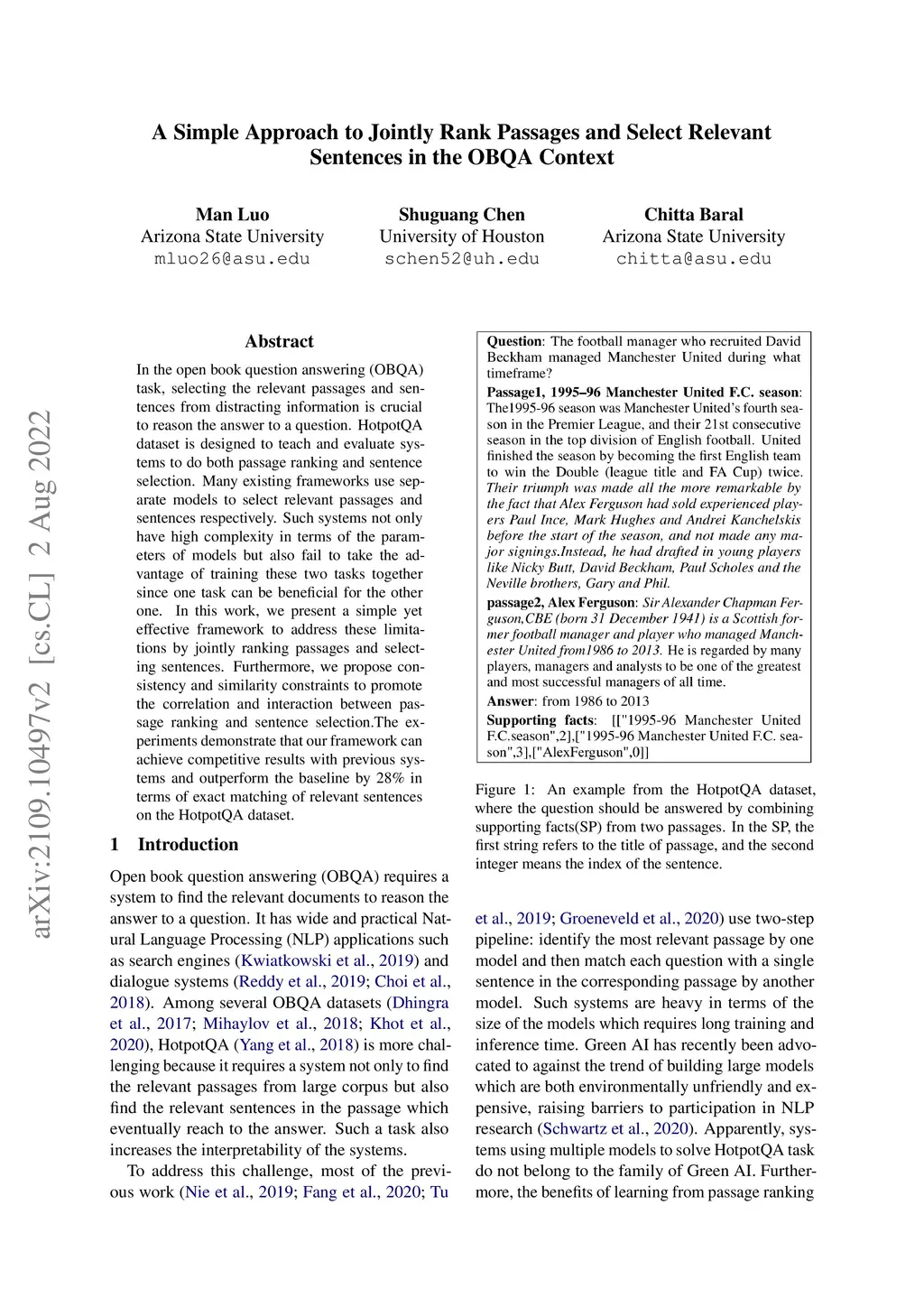 In the open book question answering (OBQA) task, selecting the relevant passages and sentences from distracting information is crucial to reason the answer to a question. HotpotQA dataset is designed to teach and evaluate systems to do both passage ranking and sentence selection. Many existing frameworks use separate models to select relevant passages and sentences respectively. Such systems not only have high complexity in terms of the parameters of models but also fail to take the advantage of training these two tasks together since one task can be beneficial for the other one. In this work, we present a simple yet effective framework to address these limitations by jointly ranking passages and selecting sentences. Furthermore, we propose consistency and similarity constraints to promote the correlation and interaction between passage ranking and sentence selection.The experiments demonstrate that our framework can achieve competitive results with previous systems and outperform the baseline by 28\% in terms of exact matching of relevant sentences on the HotpotQA dataset.