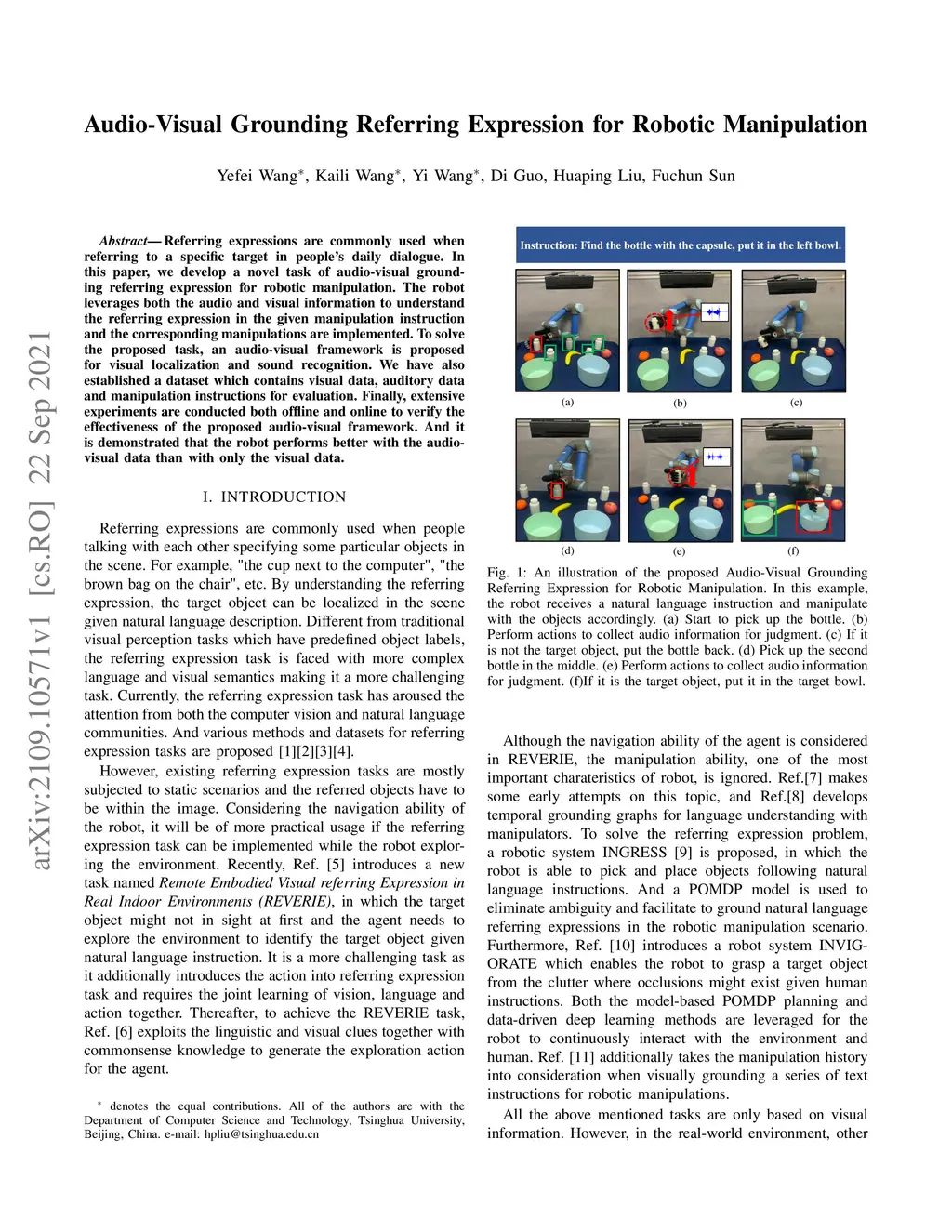 Audio-Visual Grounding Referring Expression for Robotic Manipulation