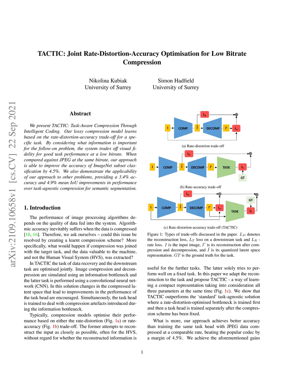 TACTIC: Joint Rate-Distortion-Accuracy Optimisation for Low Bitrate