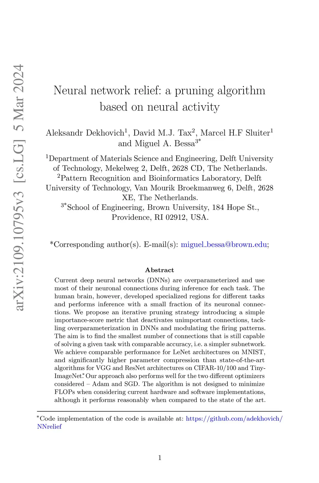 Neural network relief: a pruning algorithm based on neural activity